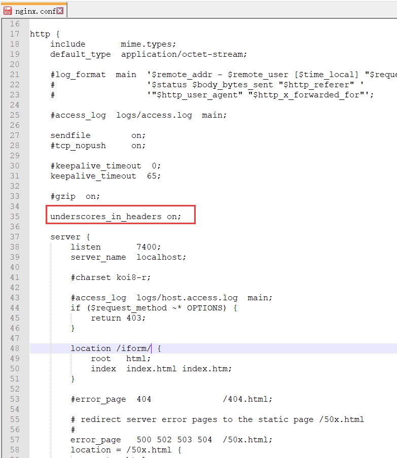 目录 搜索 展开 文档说明服务器配置方案开发电脑推荐配置服务器操作支持环境说明Windows下部署手册环境准备jdk安装Redis安装(缓存中间件)RabbitMQ安装(消息中间件)Nacos安装(注册中心)MySQL安装(数据库)Nginx安装(前端应用容器)consul安装【可选】Kafka安装【可选】Minio安装【可选】【单体服务】部署操作说明【微服务】部署操作说明如何切换后端数据源信息部署FAQLinux下部署手册环境准备mysql安装(数据库安装)RabbitMQ安装(消息中间件)Minio安装(文件存储)Nacos安装(注册中心)Redis安装(缓存中间件)Nginx安装(前端应用容器)open office安装(office文件预览)Elasticsearch安装[可选]skywalking安装(链路追踪)[可选]filebeat安装[可选]logstash安装[可选]kibana安装[可选]Kafka安装[可选]程序包部署手册Docker-Compose部署手册shell脚本使用方法启动命令快捷配置部署FAQ集群部署手册Redis集群部署RabbitMQ集群部署 Kafka集群部署MySQL集群部署minio集群部署IFORM集群部署-微服务版IFORM集群部署-单体版打包手册构建工具配置源码手动打包手册环境准备jdk安装ant安装maven安装nodejs安装【源码】后端打包手册(JDK8)【源码】后端打包手册(OpenJDK11/17)【源码】前端打包手册jekins自动打包手册环境准备jdk安装ant安装maven安装nodejs安装jenkins安装【jekins】后端打包手册【jekins】前端打包手册平台-环境属性配置一览表通用配置(每个服务都需要的配置)Eureka配置Zuul配置Oauth2Server配置Platform配置Business配置性能优化FAQ部署端口说明润乾报表部署如何开启短信登录微服务版本网关选用哪个?nginx相关Nginx如何正向代理https和wssnginx反向代理报400nginx反向代理转发后端请求报未知账号nginx反向代理转发后端请求nginx 如何开启内外网访问数据库相关数据库要求说明执行初始化或者change脚本 sql出错数据库密码加密配置Mysql不能使用具体ip连接数据库问题缓存相关缓存初始化加载器配置如何直接将redis作为唯一缓存框架文件上传相关文件上传报413状态码文件上传时临时文件被清理导致NoSuchFileException异常问题如何修改文件上传大小限制文件上传时临时文件被清理导致NoSuchFileException异常问题ES检索业务功能如何支持ES检索?数据模版如何支持ES检索?Linux相关linux远程登陆免密配置Linux如何查看某个目录大小两台linux主机如何快速复制文件或目录Linux如何查看CPU信息skywalking相关如何解决Skywalking默认不监控Spring-cloud-Gateway的问题idea接入skywalking报错如何自定义监控任意代码开发工具IDEA解决项目编译显示乱码IDEA 怎么中文自动转换为Unicode编码idea编译项目 失败_解决idea 项目编译后没有class文件的问题如何开启邮件设置如何搭建maven私服其他登录超时如何配置 暂无相关搜索结果! 阅读次数:300 本文档使用 MinDoc 发布 nginx反向代理转发后端请求报未知账号 使用nginx反向代理转发后端请求报未知账号 编写版本:v3.4.0适用版本:所有版本 使用nginx反向代理转发后端请求报未知账号解决方案:打开nginx配置nginx.conf文件,设置header转发# 设置header转发 underscores_in_headers on; 作者:hugh 创建时间:2024-01-03 10:17最后编辑:hugh 更新时间:2025-11-11 15:07
