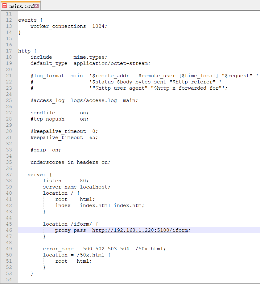 proxy_pass    http://192.168.3.220:5100/iform;