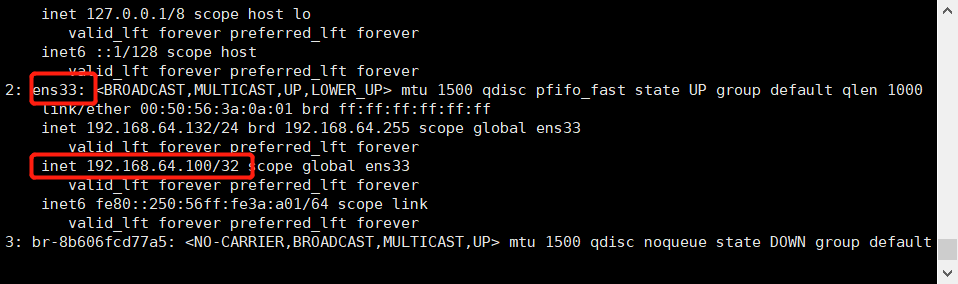 }keepalived启动成功后,VIP节点可以通过查看IP地址,可以看到配置的虚拟节点