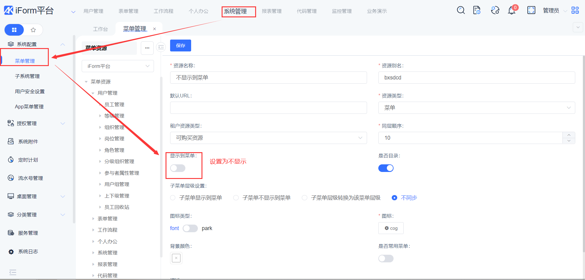 ①、菜单管理-》添加