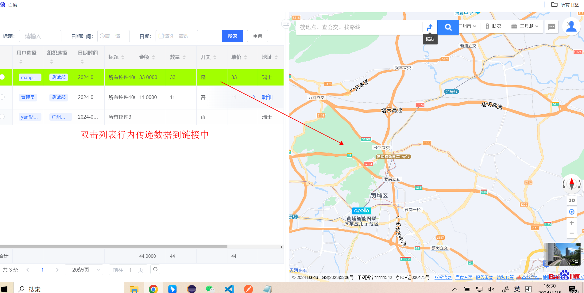 - 4.15、【数据模板组合链接】双击左边列表行触发事件调用执行右边地图里的方法