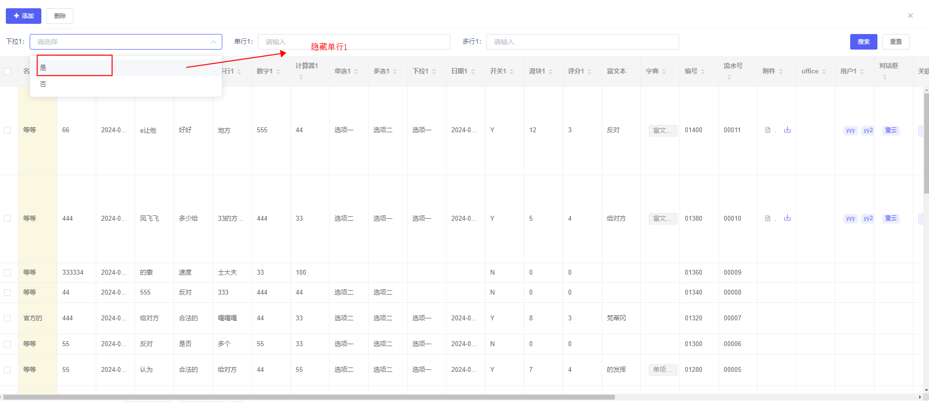- 4.11 有个查询条件是否,选择是,就隐藏其中一列,选择否就隐藏另一列
