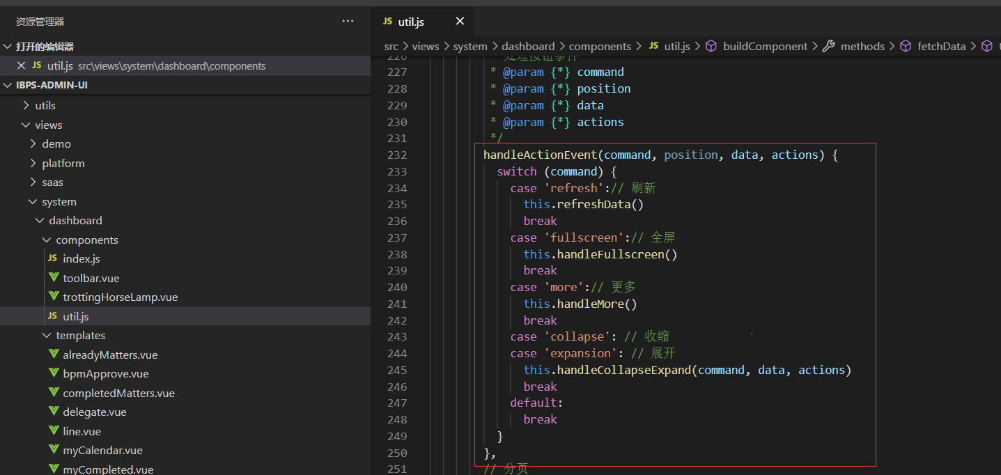 3、数据在util.js中的buildComponent方法中调用时,对应的请求返回的数据会自动填充到生成的组件内的参数上