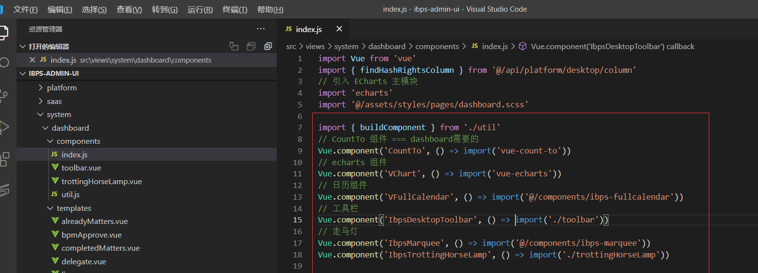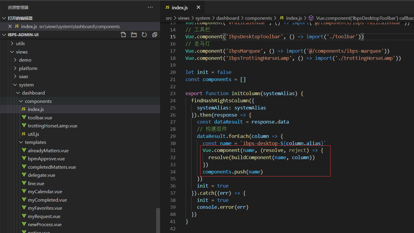 1、生成的页面是调用src\views\system\dashboard\components\util.js中的buildComponent方法