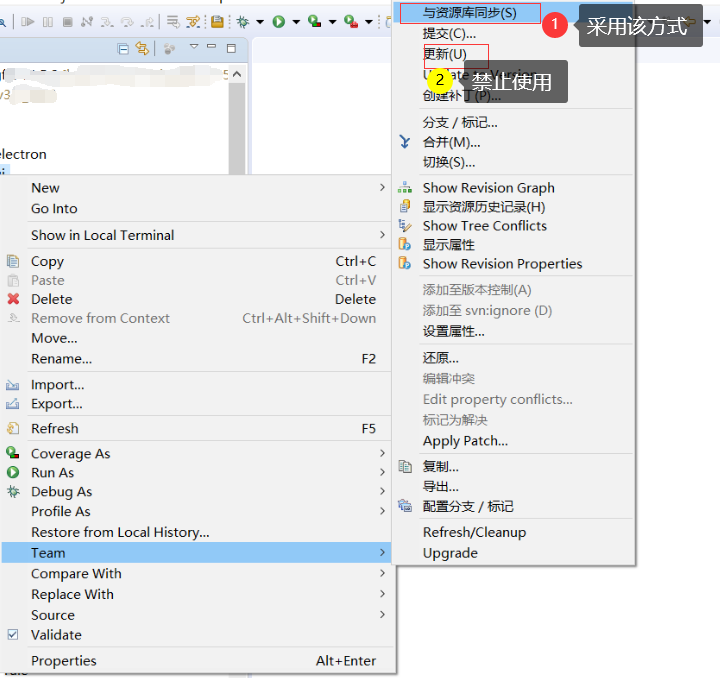 请一定要用“与资源库同步”的方式,禁止采用 更新