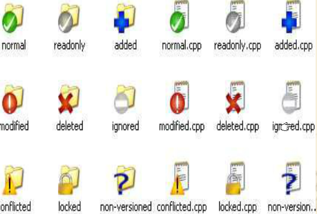有冲突没有解决,就更新或提交的文件。 | A conflicted file. These are typically files that had a commit/update conflict that you marked to resolve later. |