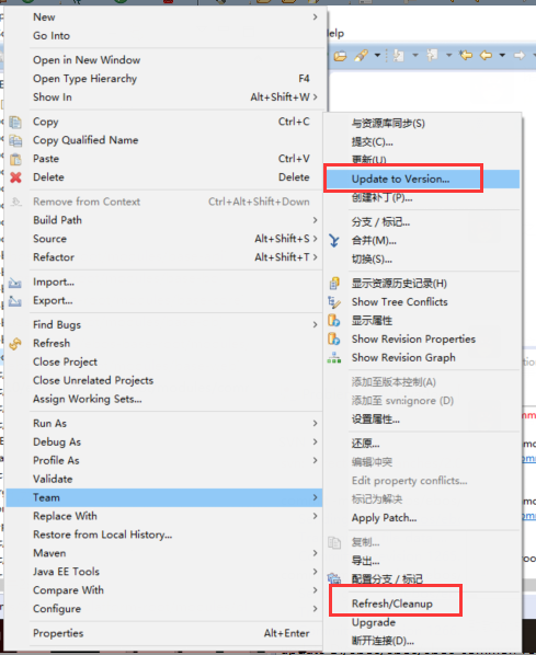 3、编辑源文件为自己真正想要到svn服务器上的最新版本文件。右击Team->提交,冲突解决