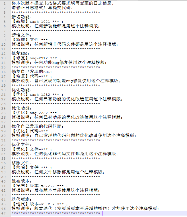 提交的代码请填写相关备注,这样对找回之前版本能很快定位,其他人员更新你代码也可以了解你提交解决办法。