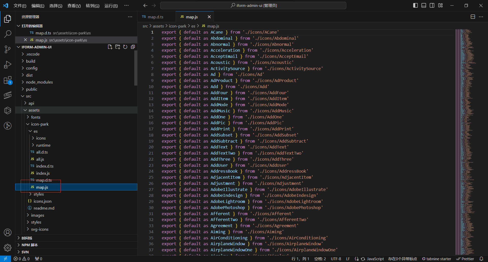 代码路径:src\assets\icon-park\es\map.js,这里可以增加新的图标的导出