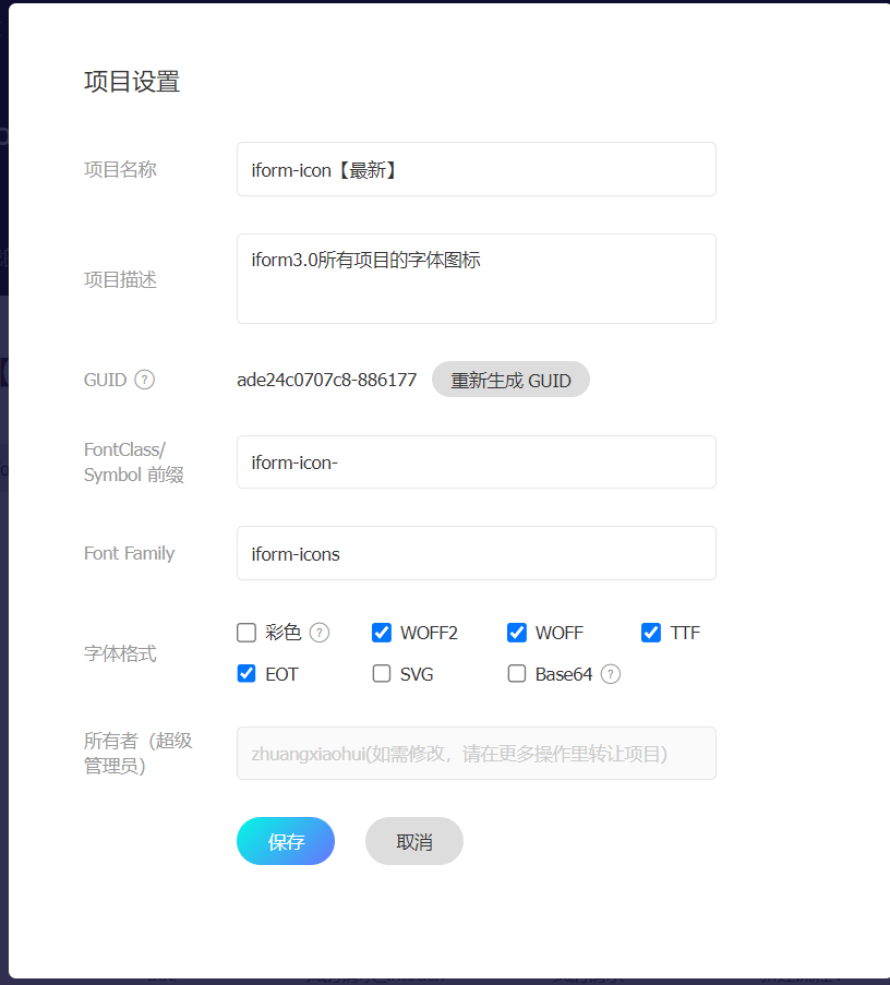 | FontClass/Symbol前缀 | iform-icon- | 必须一致 |