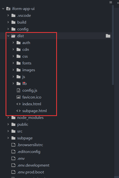 把刚刚打包出来dist 文件 复制到 刚刚新建的文件,