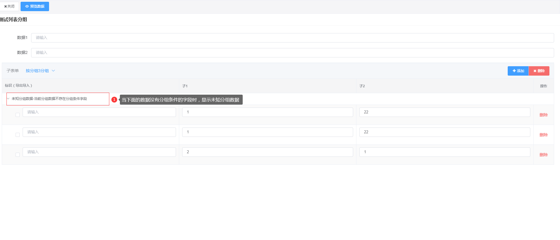 7.如果配置中分组条件字段都不存在于列表数据中,则列表分组的下拉行数据显示未知分组数据