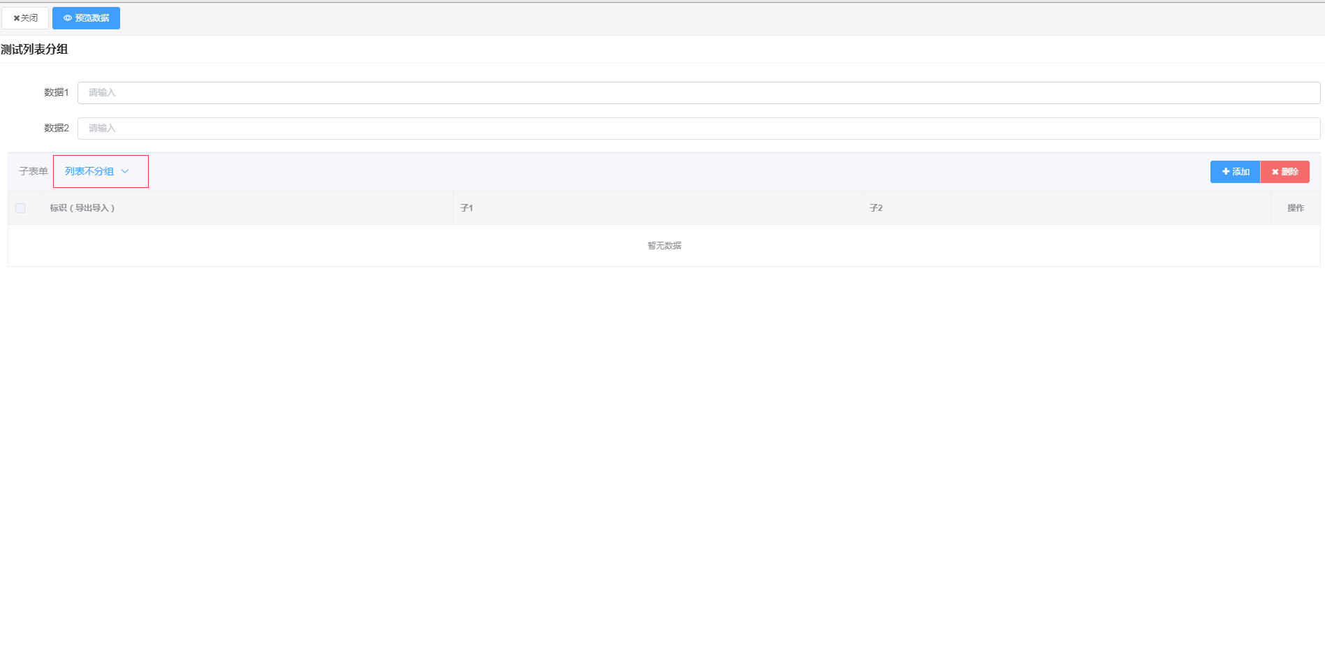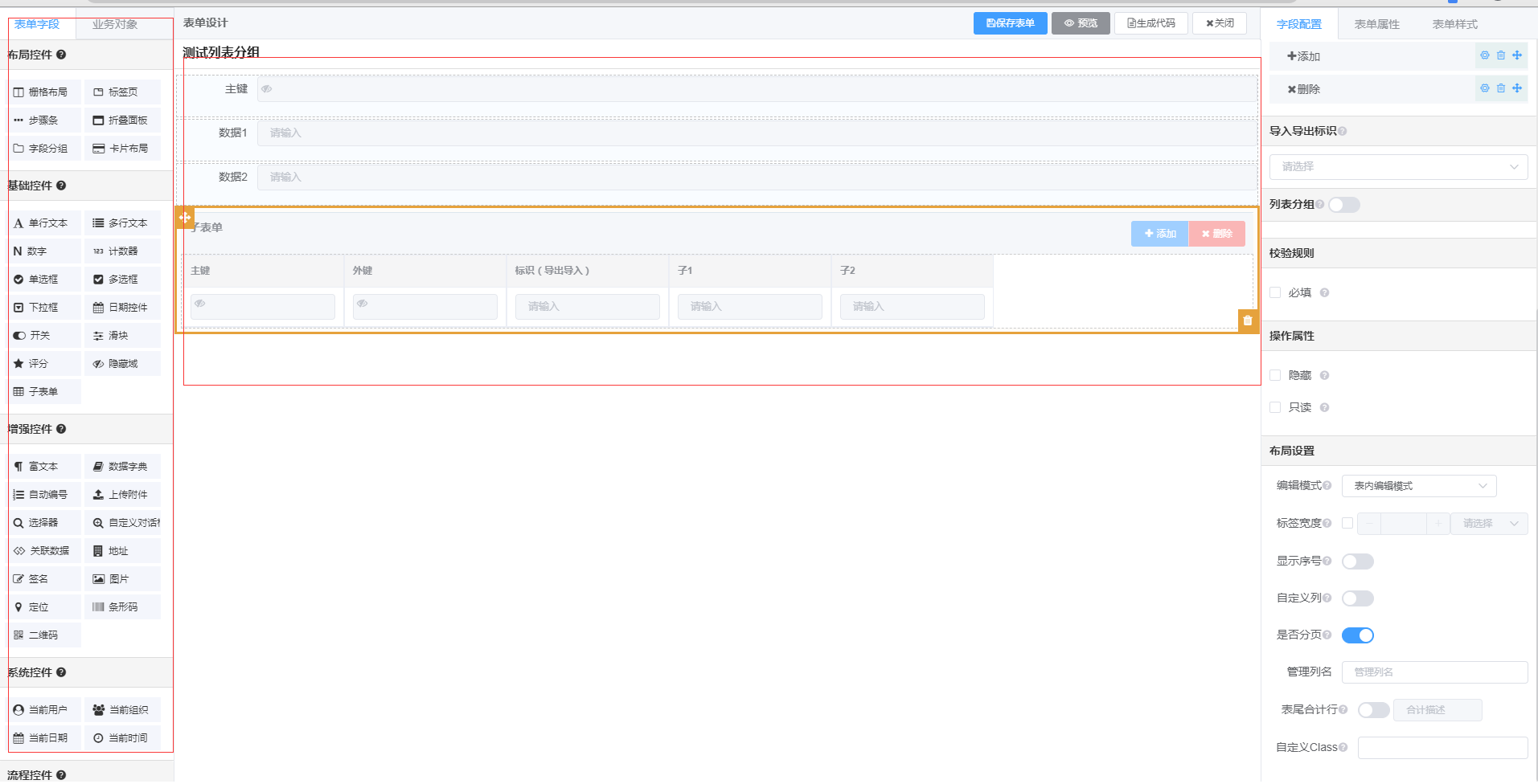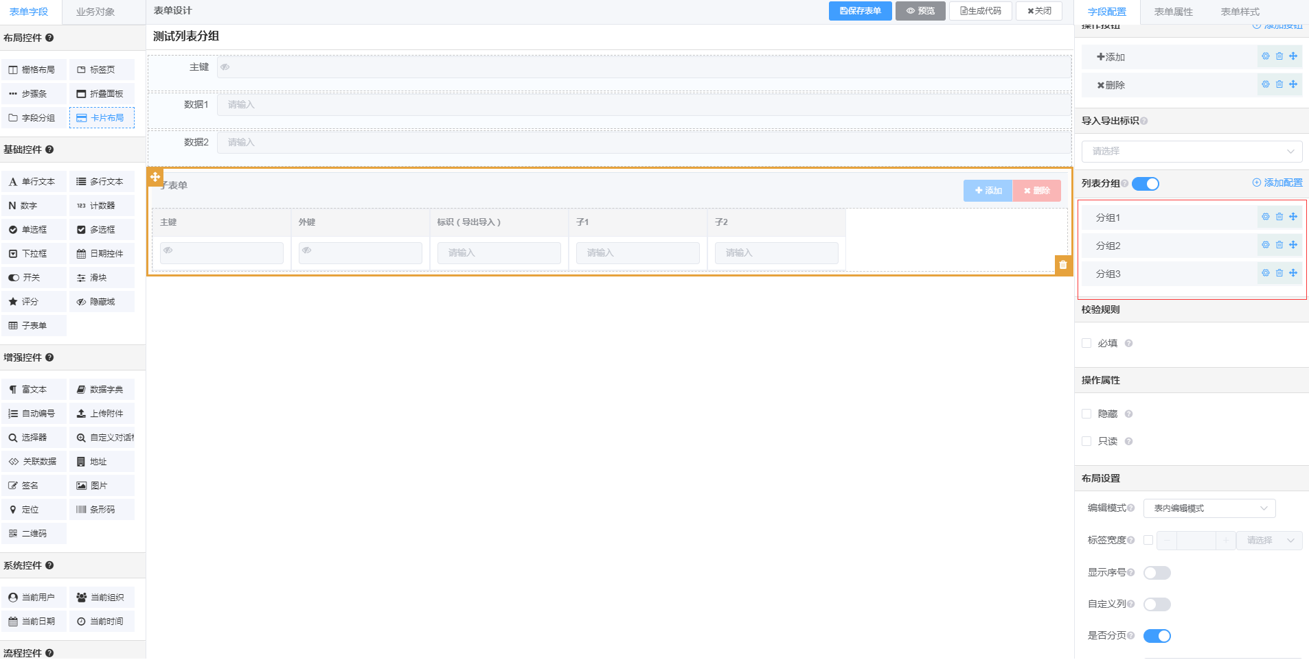 当前文档主要是描述【表单管理】列表中,【表单设计器】【子表单】控件的【列表分组】功能。