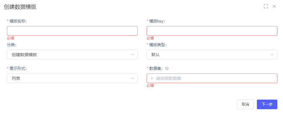 数据模板支持“默认”、“对话框”、“值来源”类型;