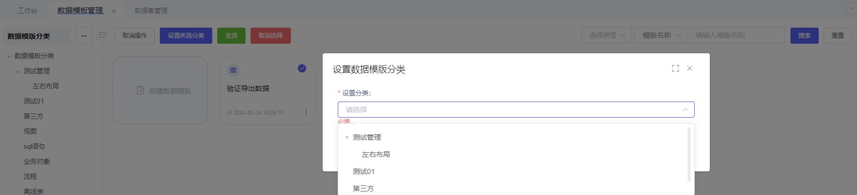设置所选分类:配置对应分类,选择分类时就可以通过树形来显示分配后的数据