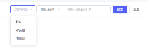 模版类型:默认、对话框、值来源;这三种类型生成模版界面的展示形式不同