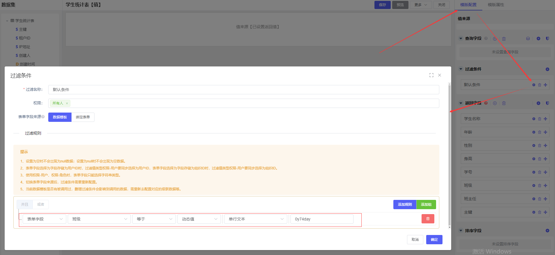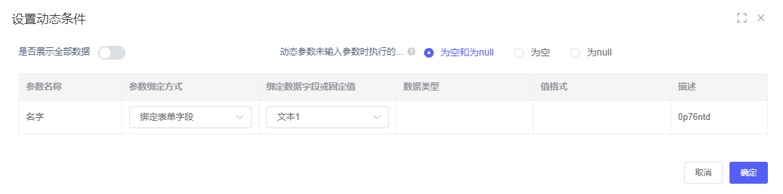 设置动态参数:根据绑定的值来源配置的过滤条件来过滤数据