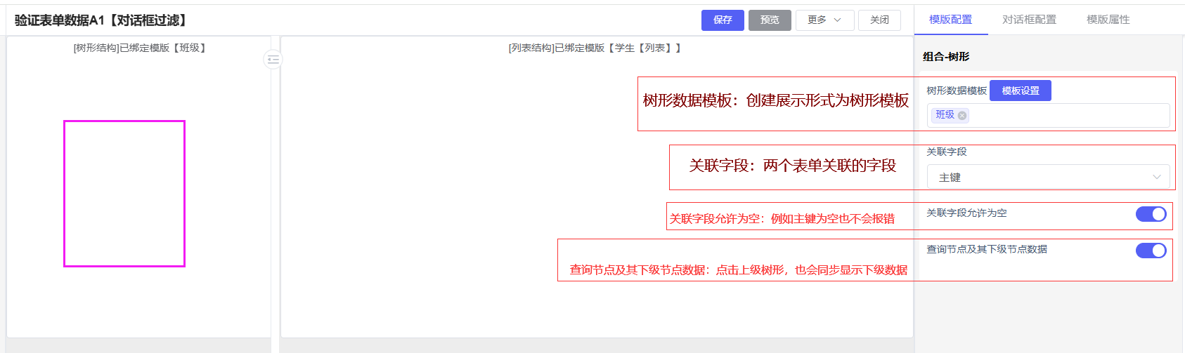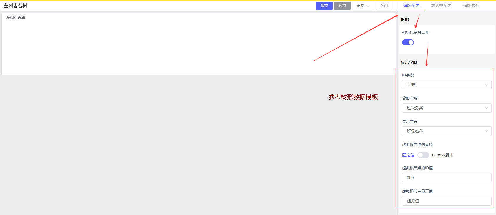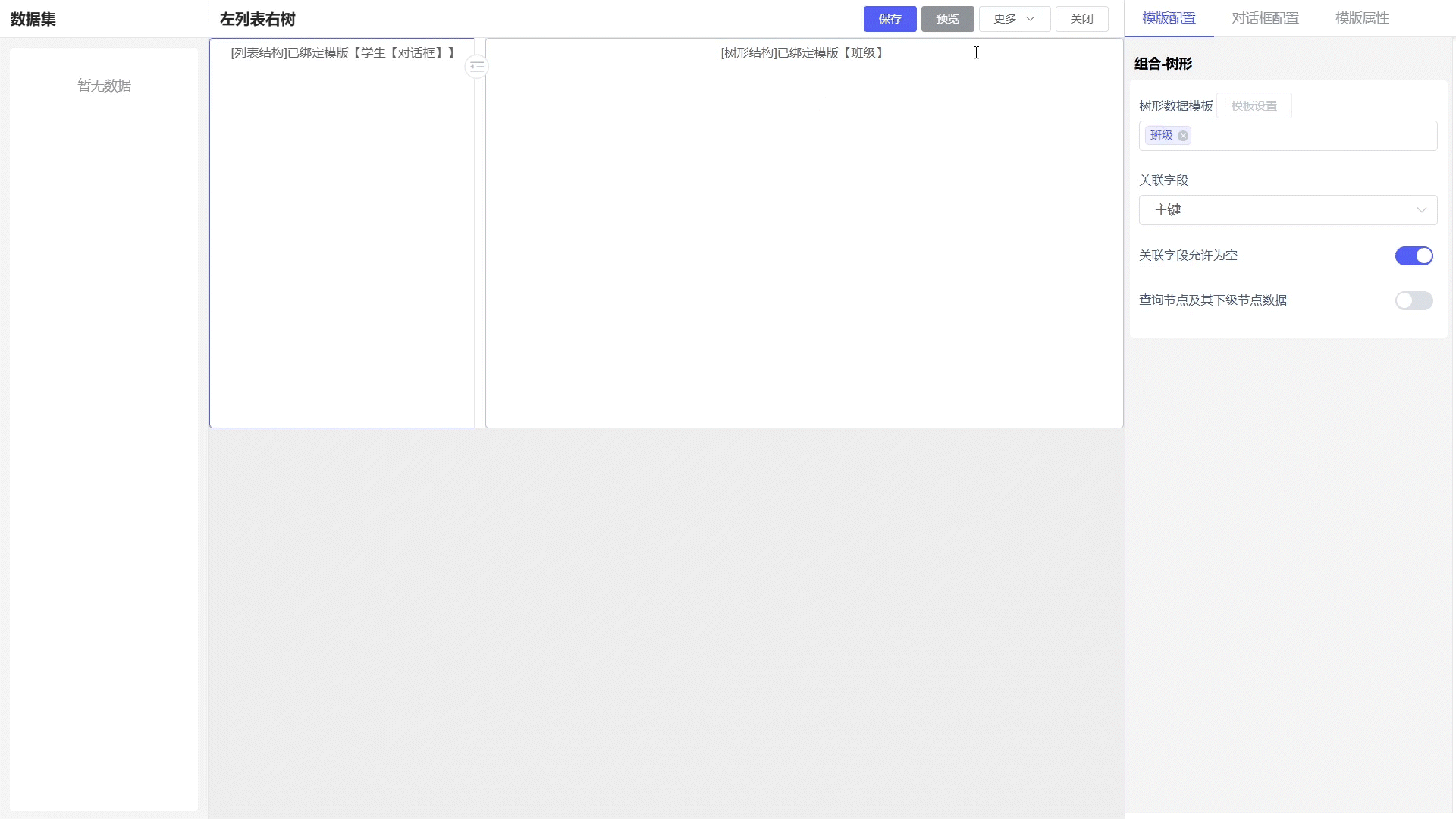 5、左树右列表、左列表右树,追加按钮设置,源数据信息显示字段暂时数据集以列表为准