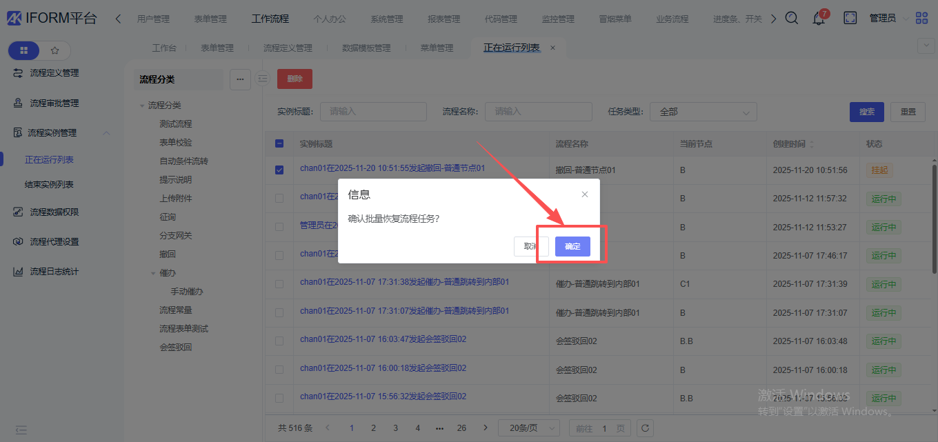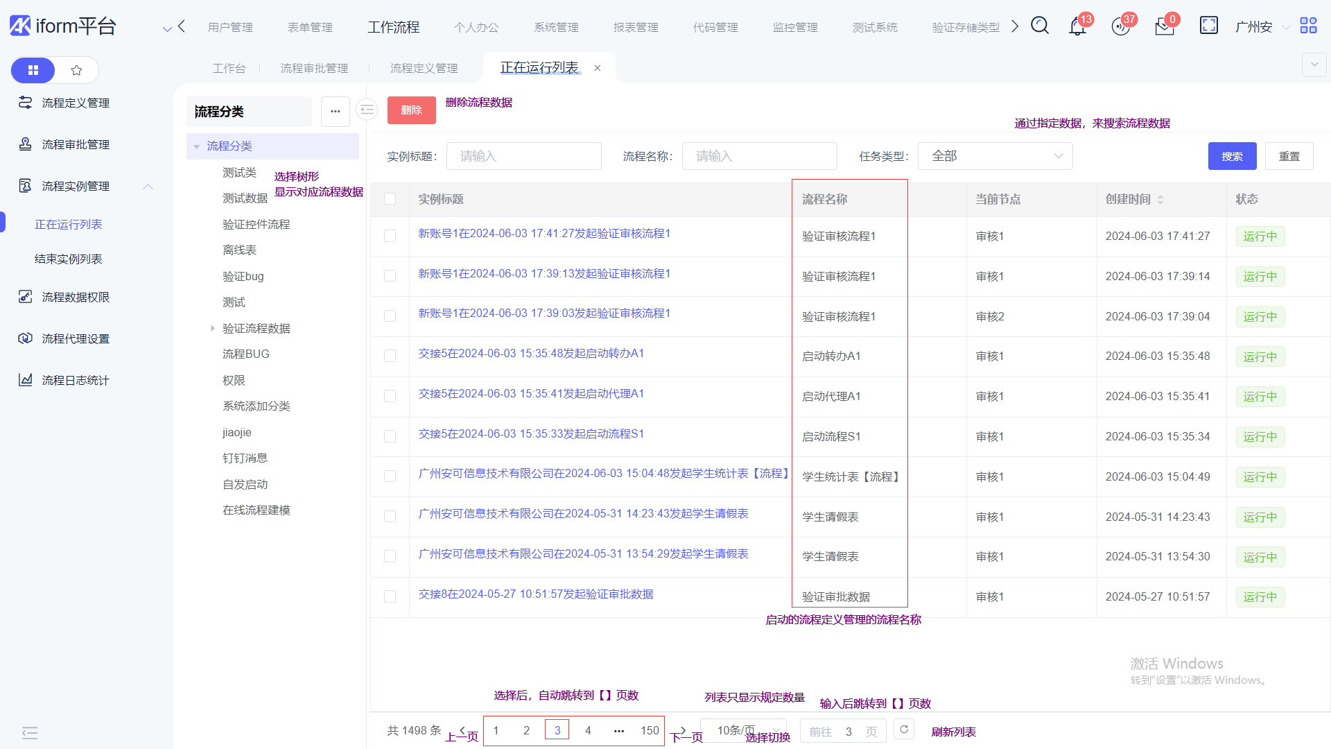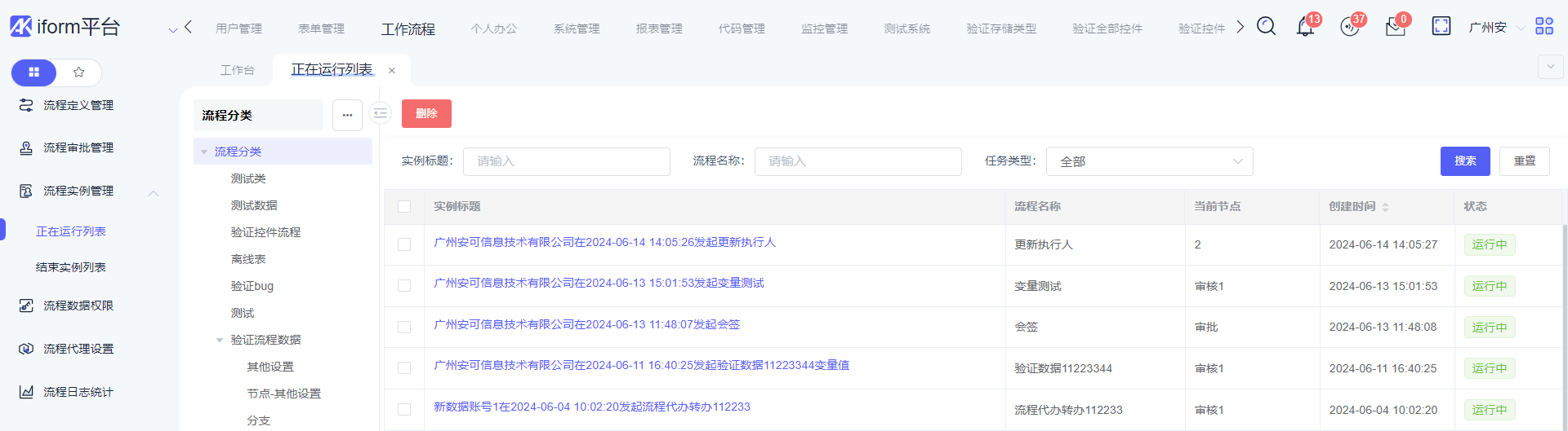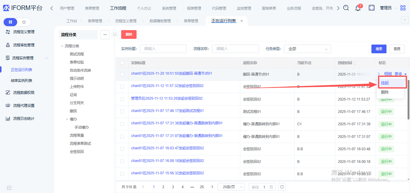 可以删除正在运行数据,删除成功后,流程会终止