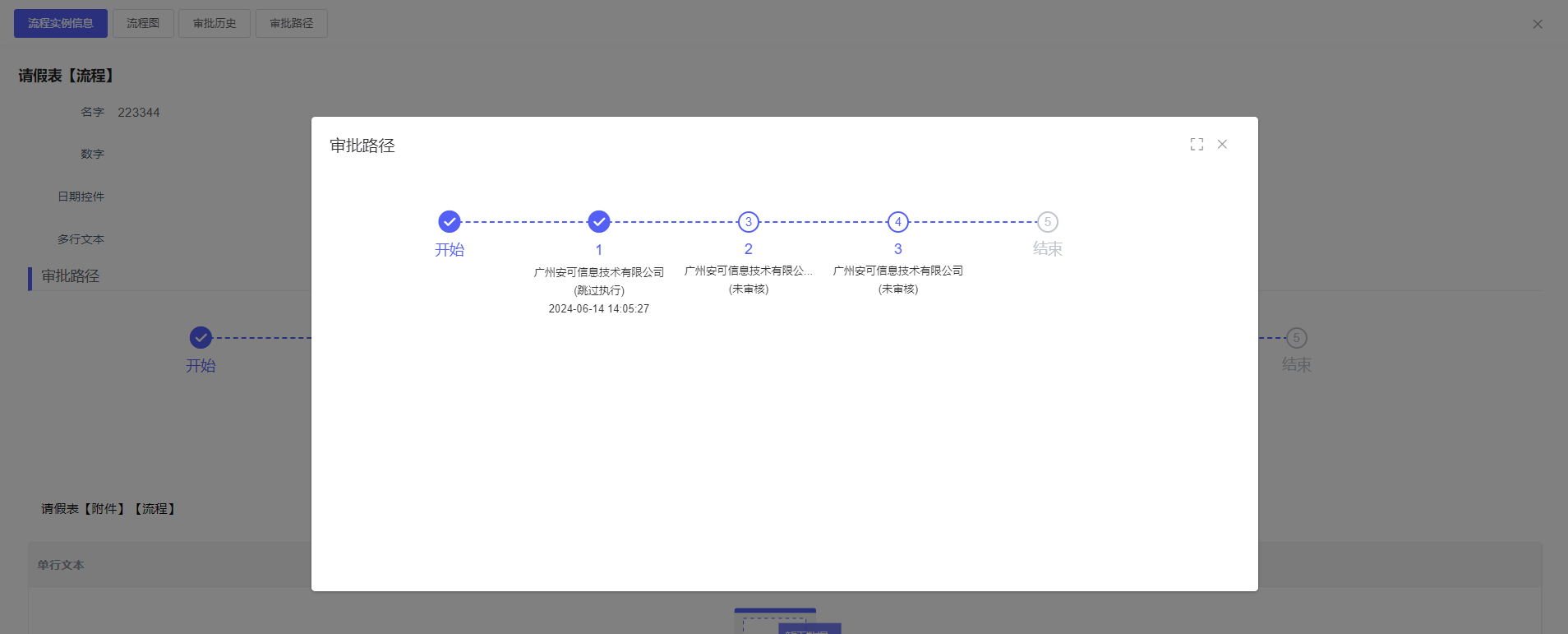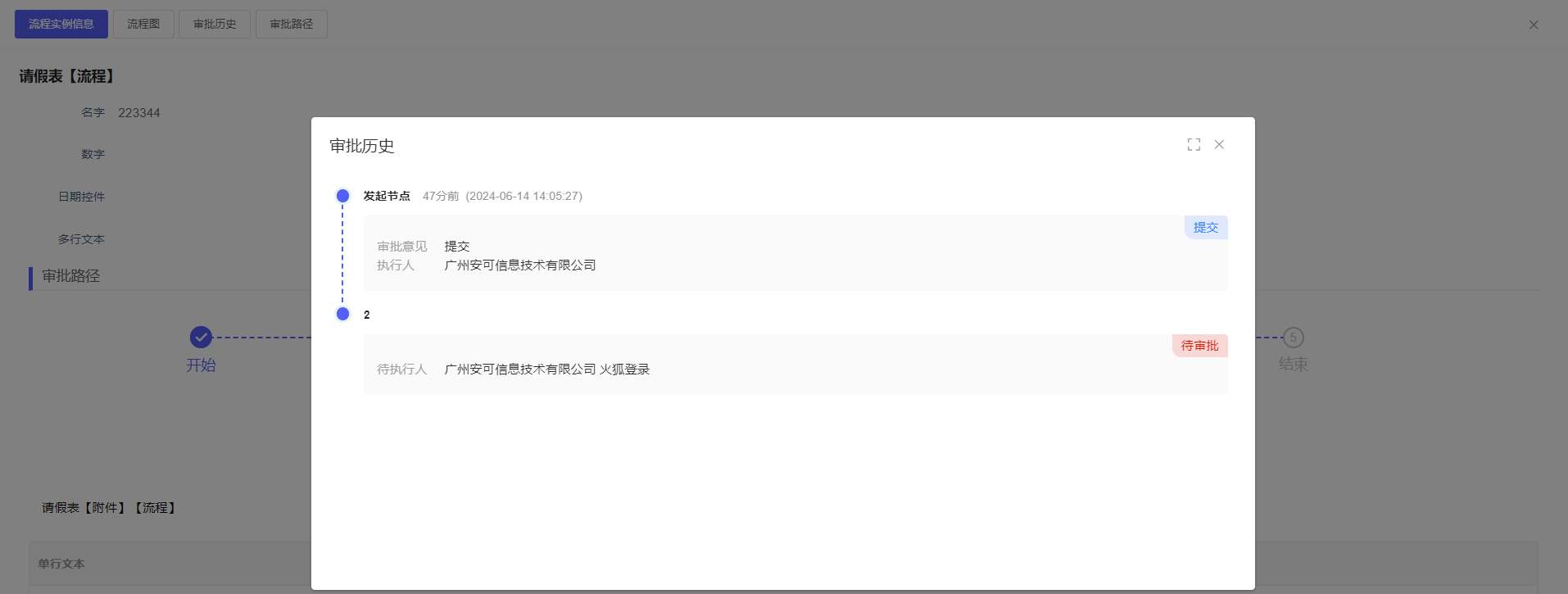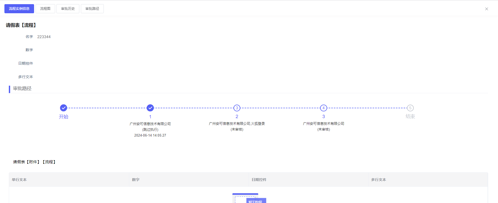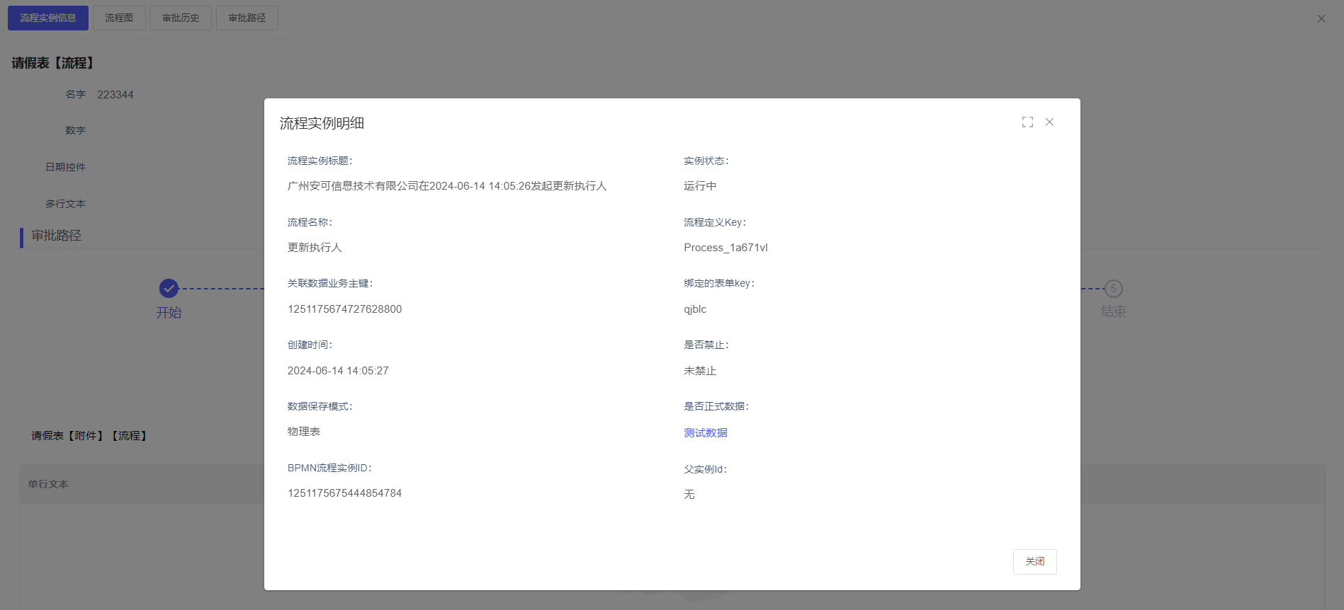 明显表单数据,以及可以查看流程信息【流程实例信息,流程图,审批历史,审批路径】