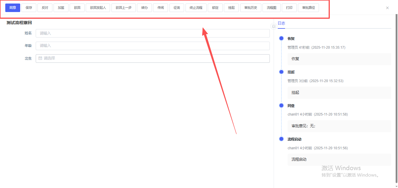 此时,使用待执行人账号查看该实例时,可进行审批