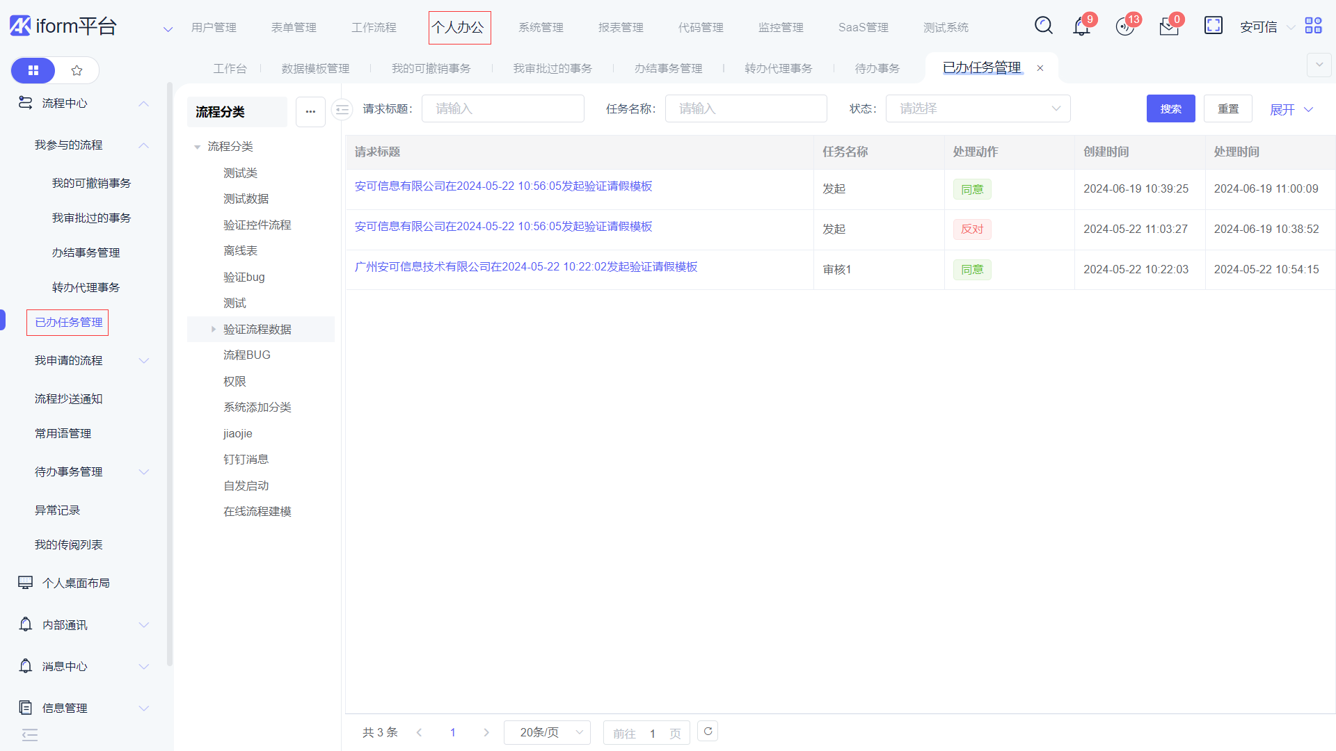 6、搜索框:1、请求标题:搜索对应的请求标题,显示对应的流程数据(模糊搜索)