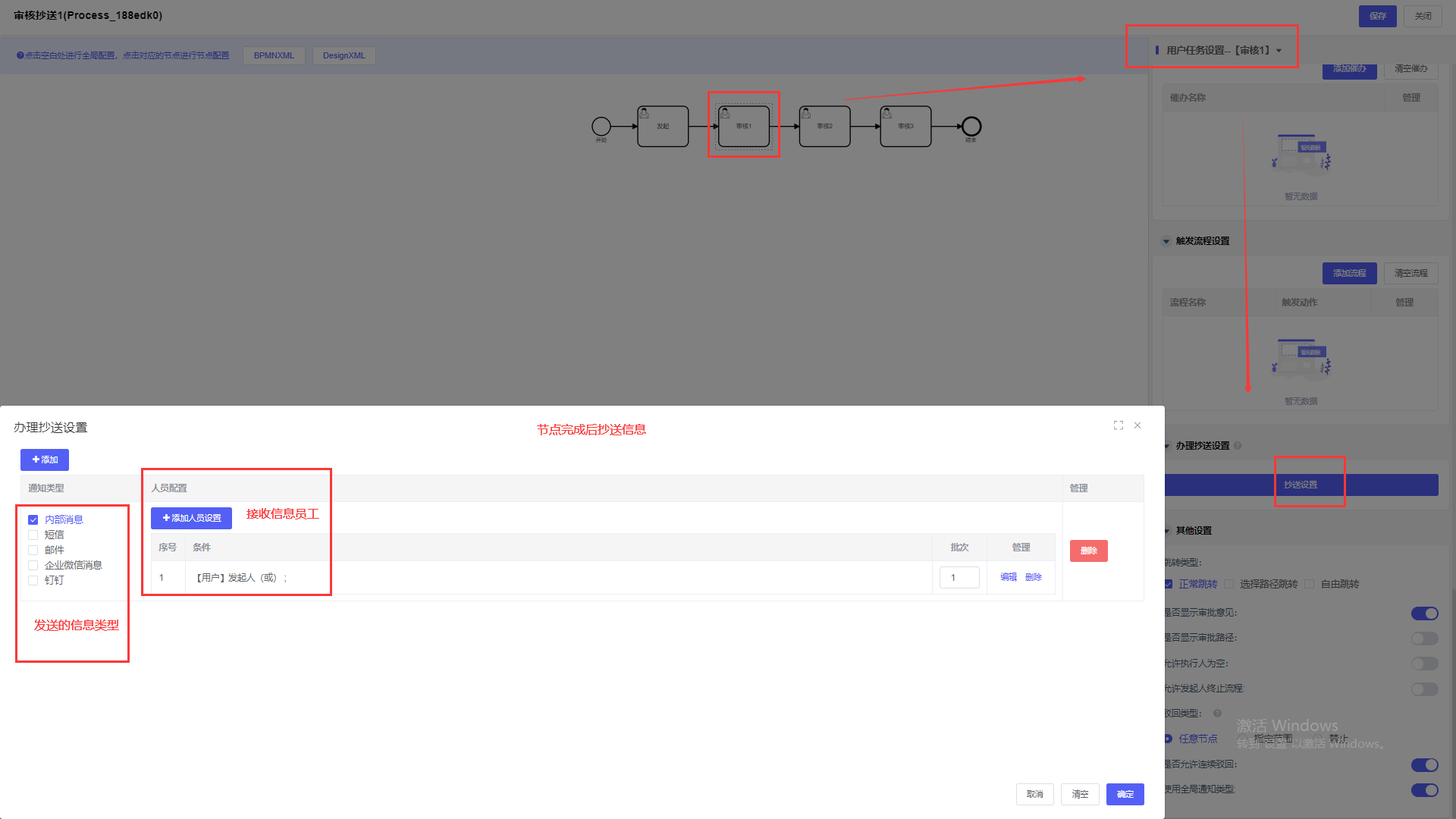 简介:根据流程定义中设置:(节点/全局)设置了办理抄送通知: