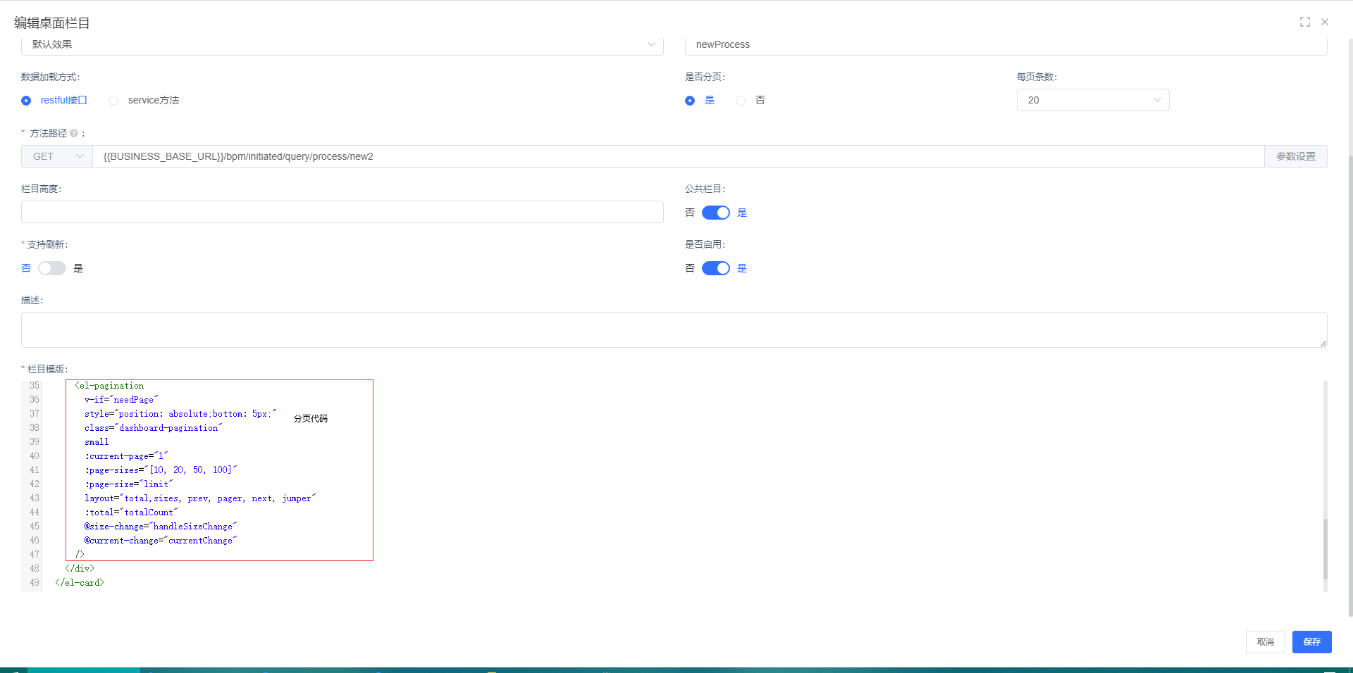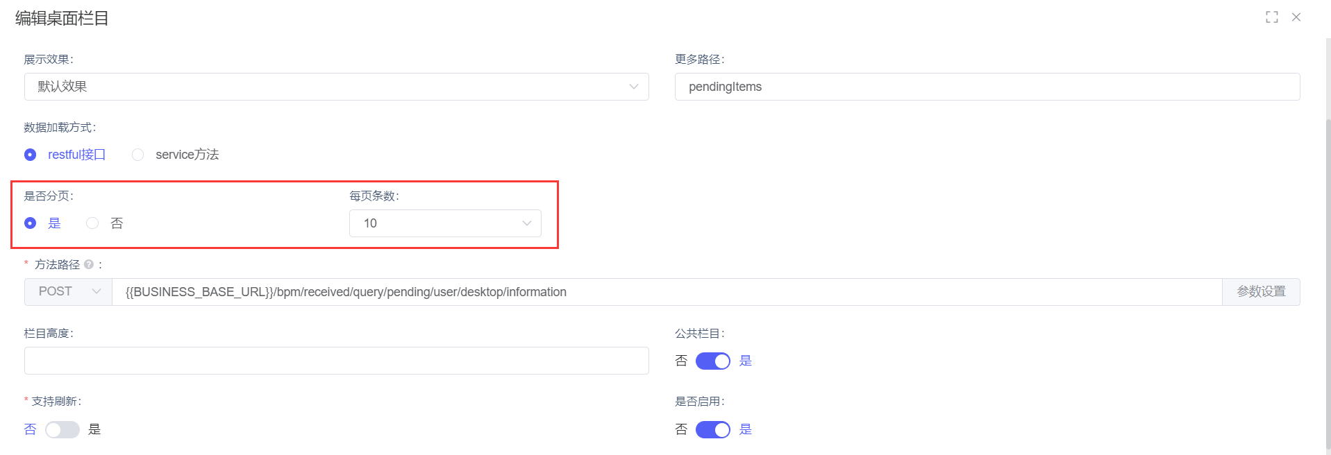 是否分页:开启就有分页选项,关闭就不会显示分页选项