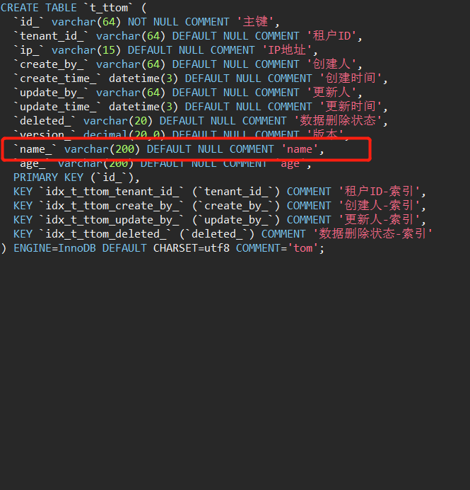 t_ttom对应的是表单绑定的业务对象生成的物理表表名