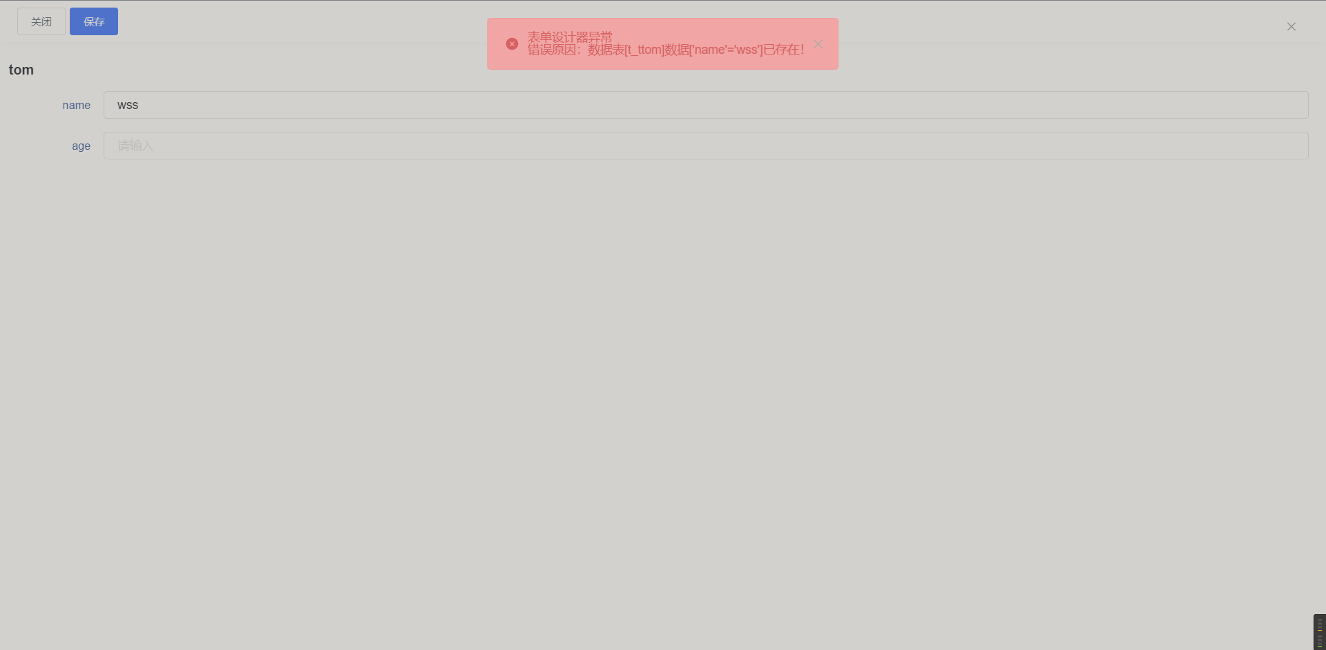 新建一个数据模板,绑定上面配置的表单,测试添加是否有校验