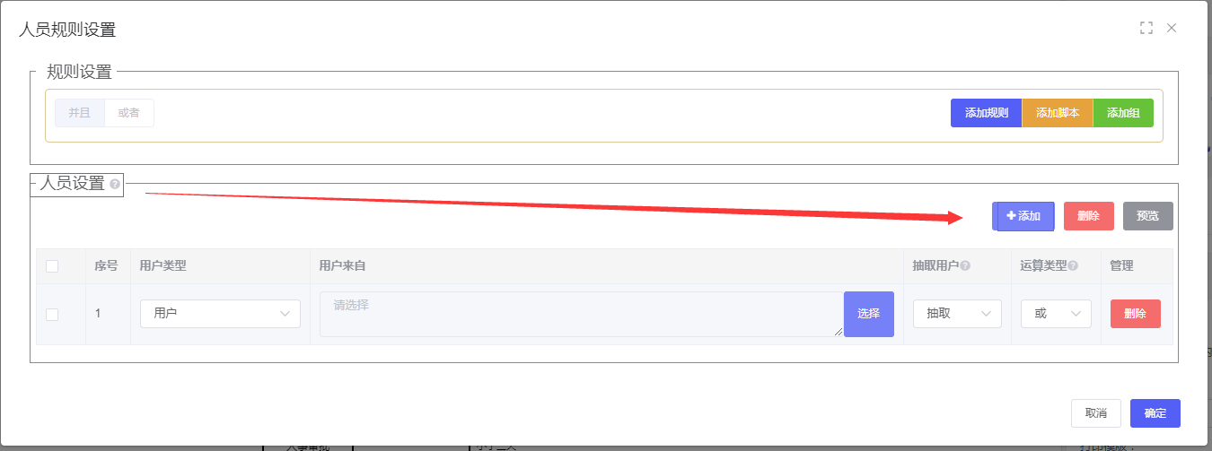 再选择“人员设置”-点击“添加”按钮: