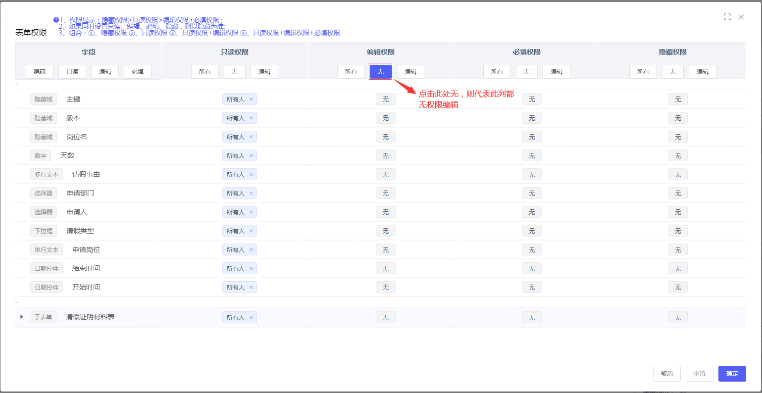 - 直属领导审批:配置表字段权限全部可见,但不可编辑;