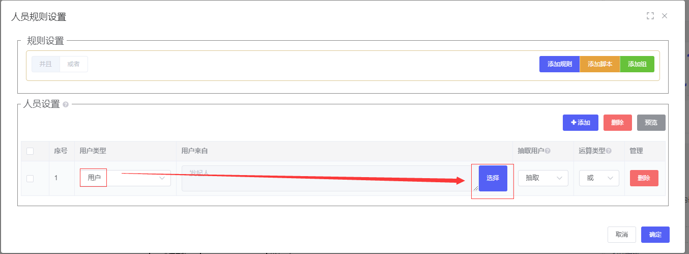 再选择用户类型为“用户”-“点击选择”按钮:
