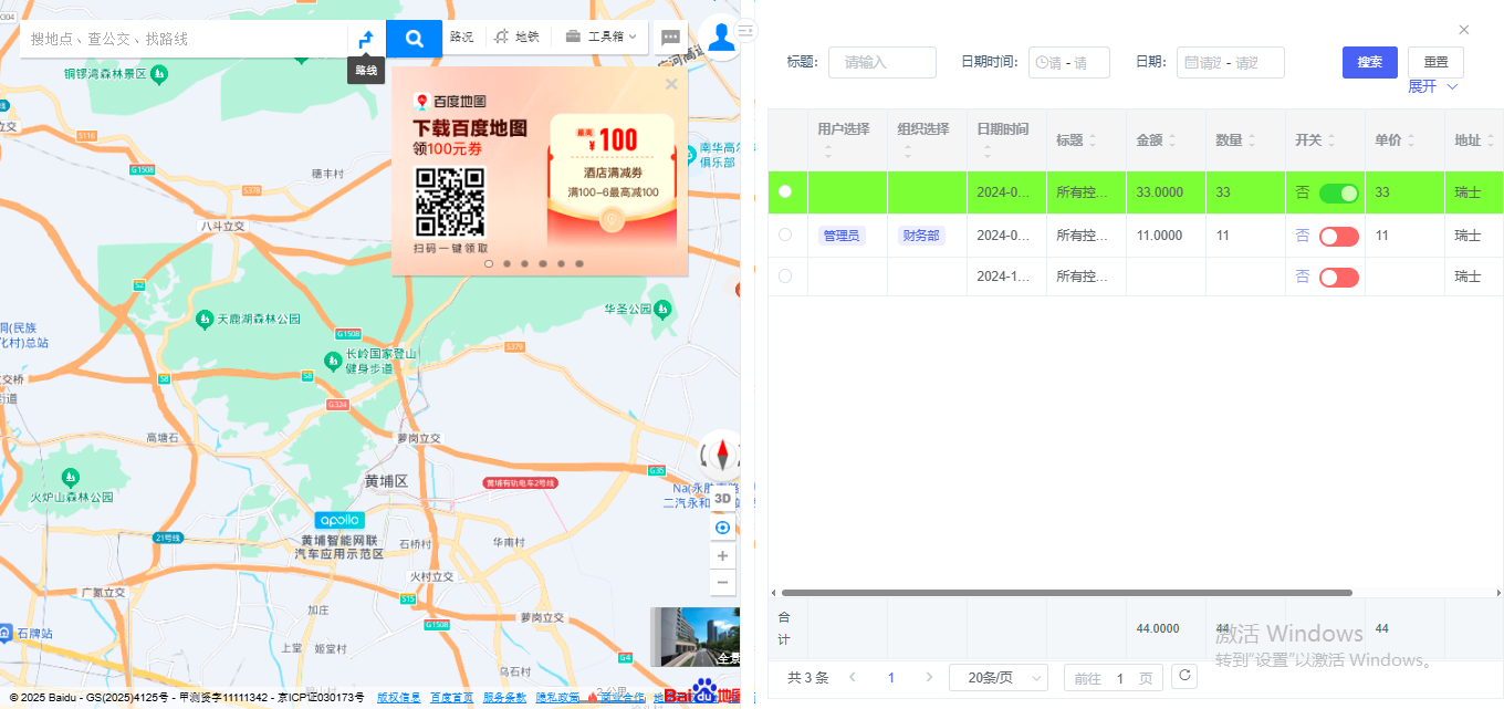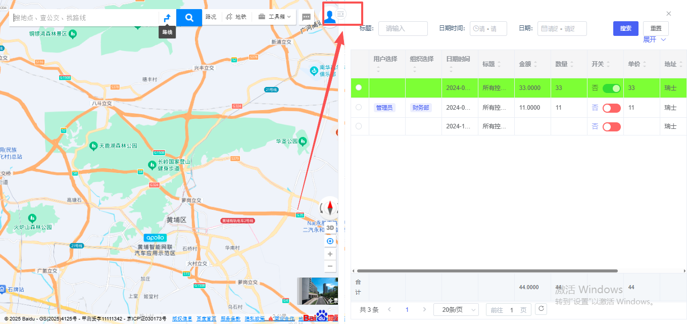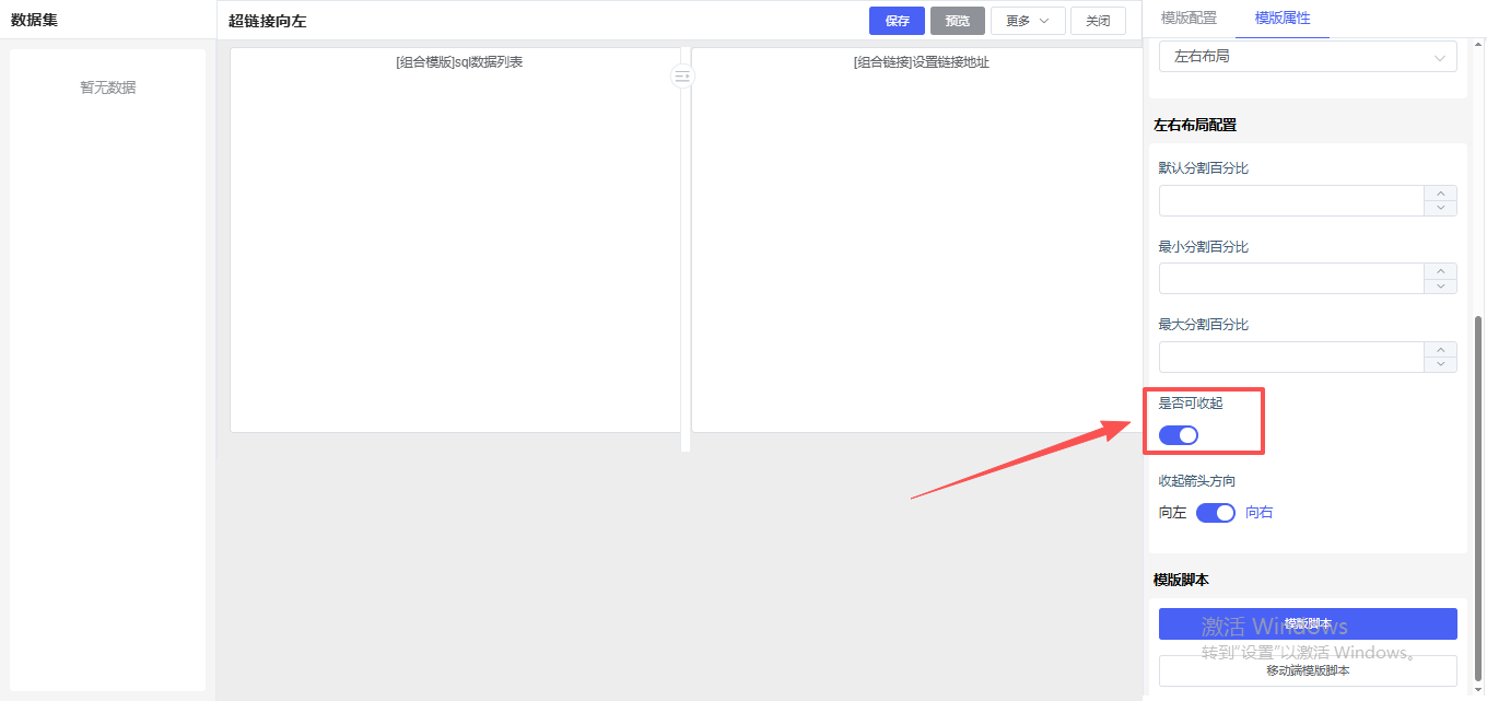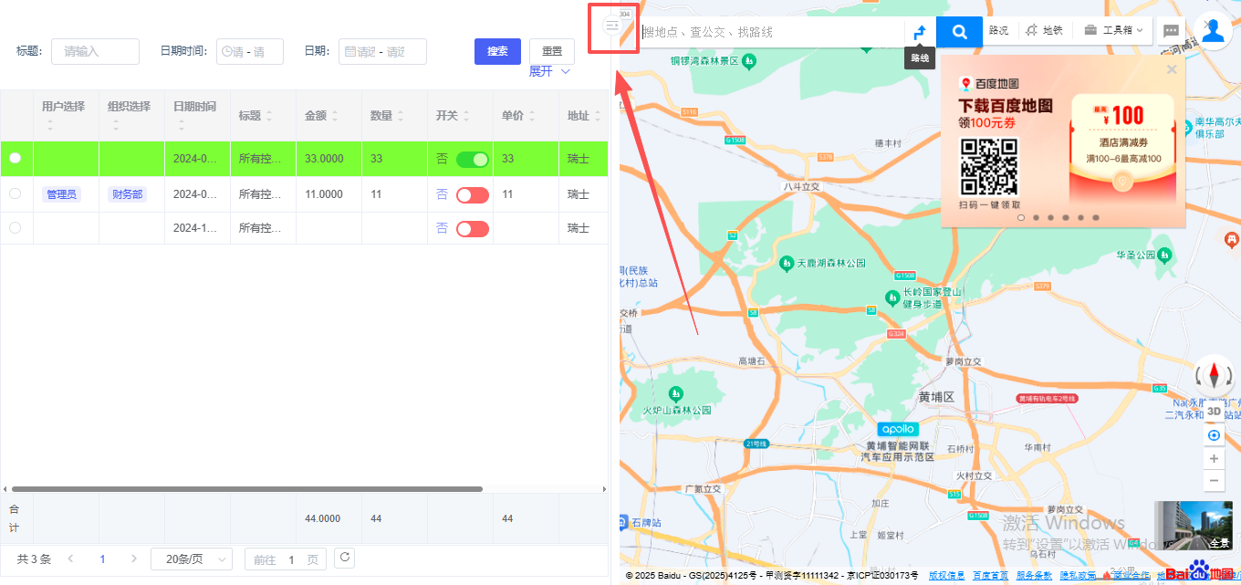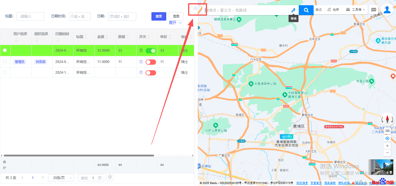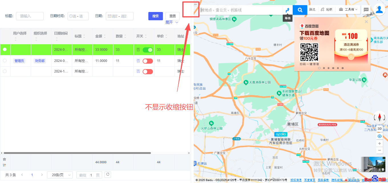 设置[可收起]时,预览/发布菜单时,显示收缩按钮,可设置收缩左边列表还是右边地图