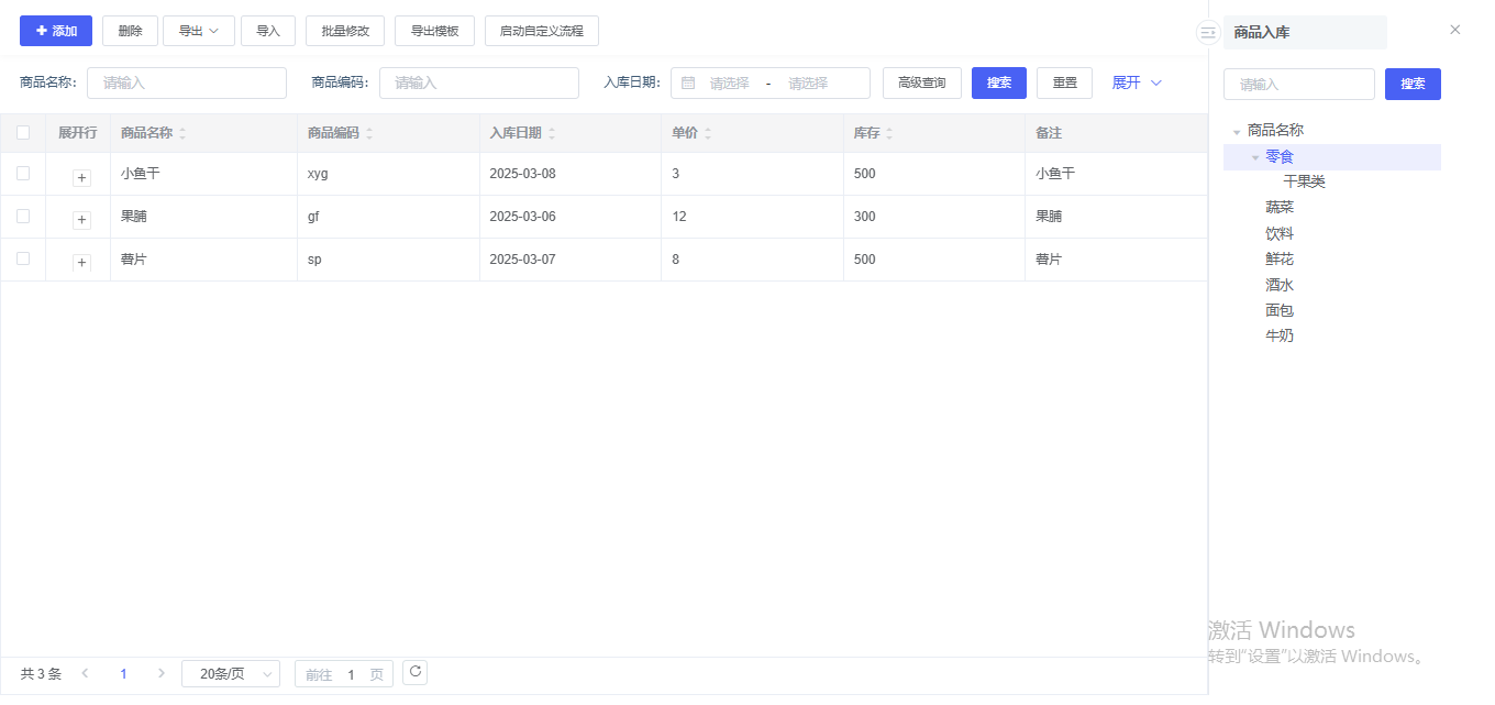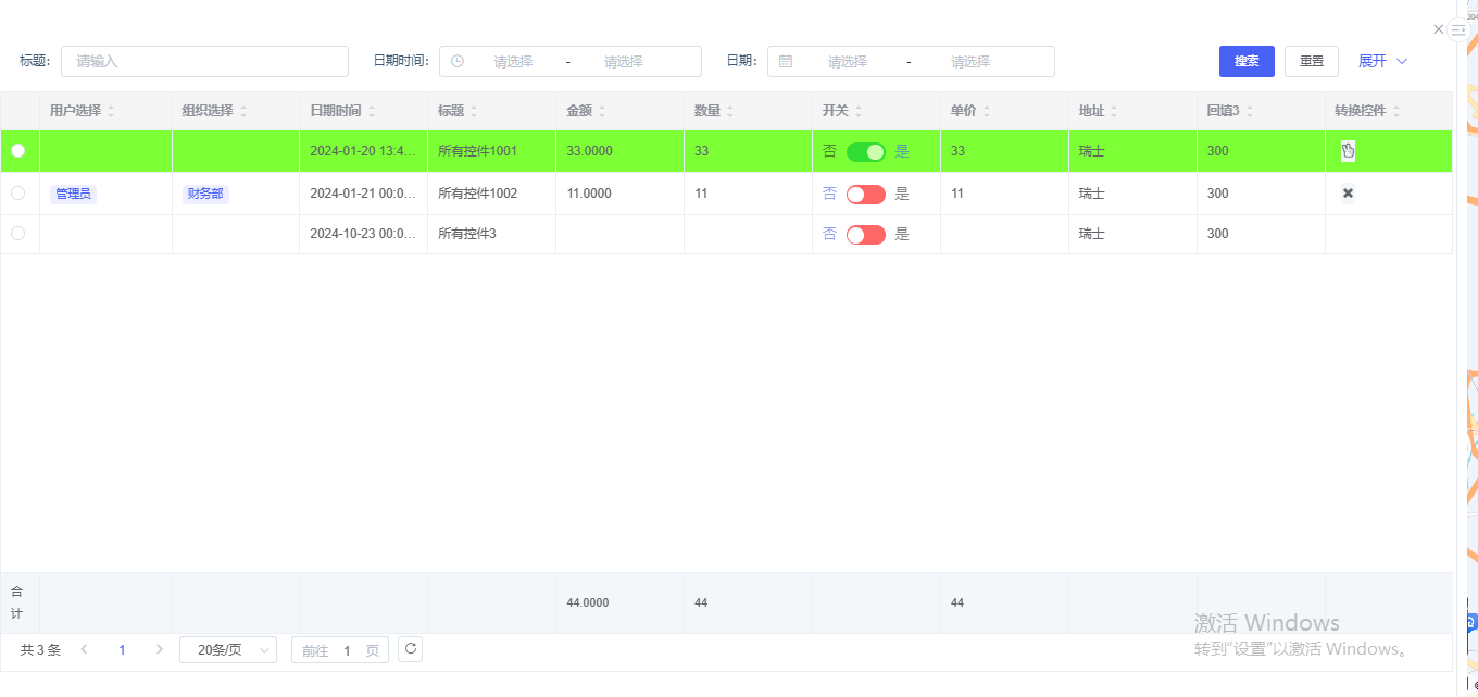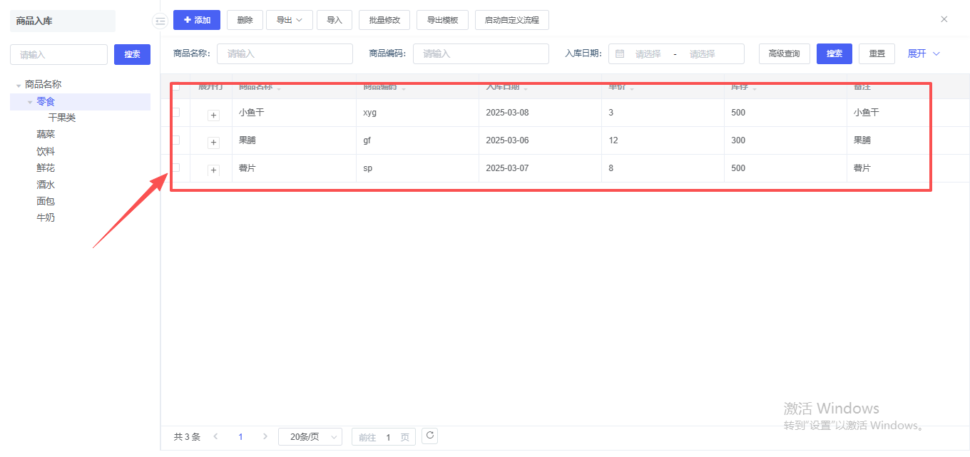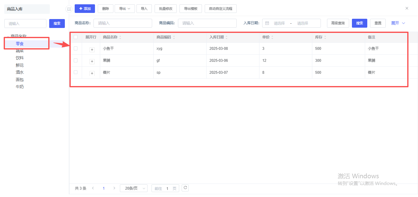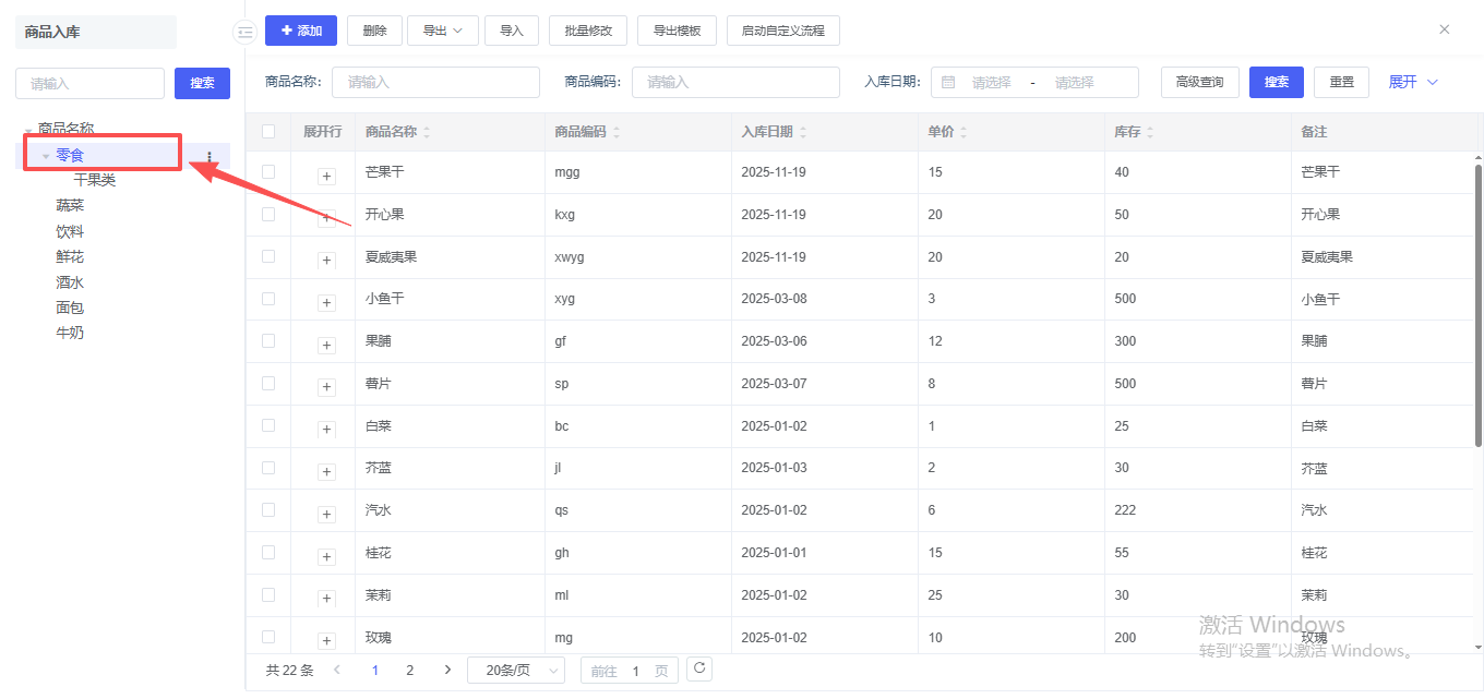 • 预览查看数据,选择点击左侧的树形数据,可筛选出于树形主键ID值相关联的数据。
