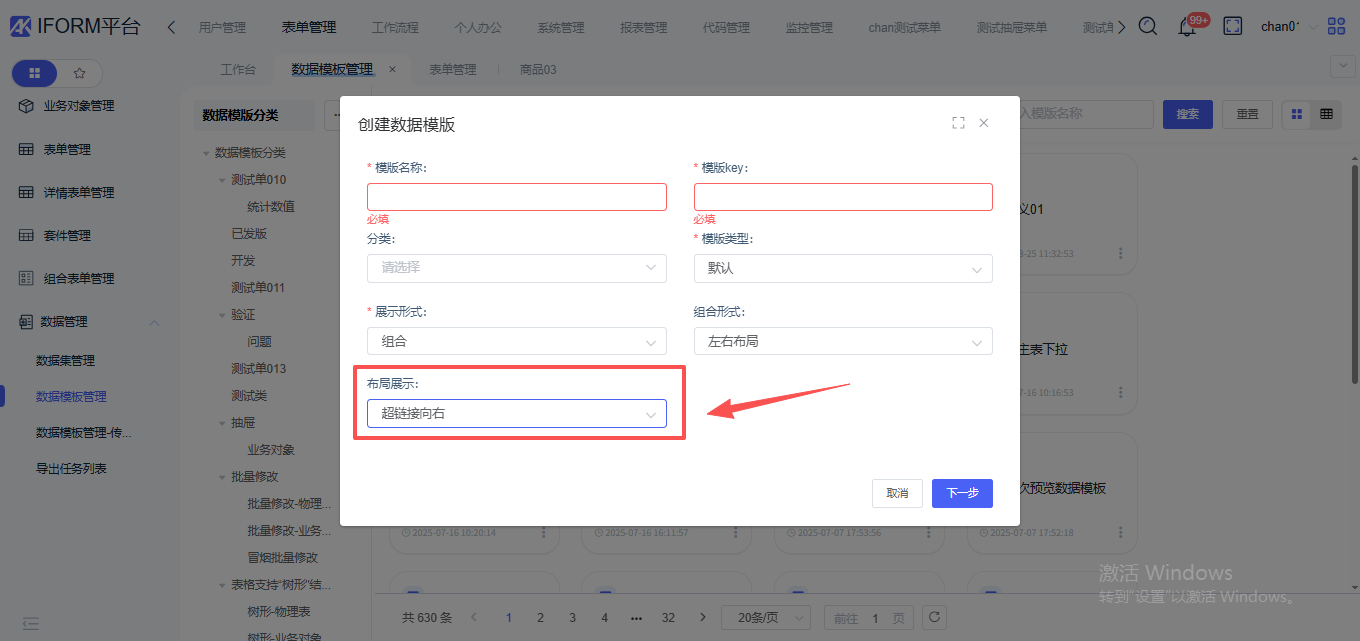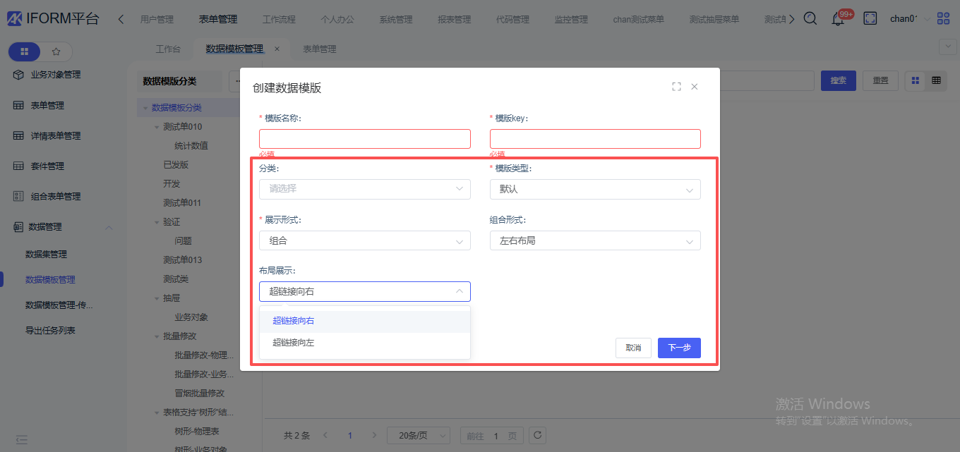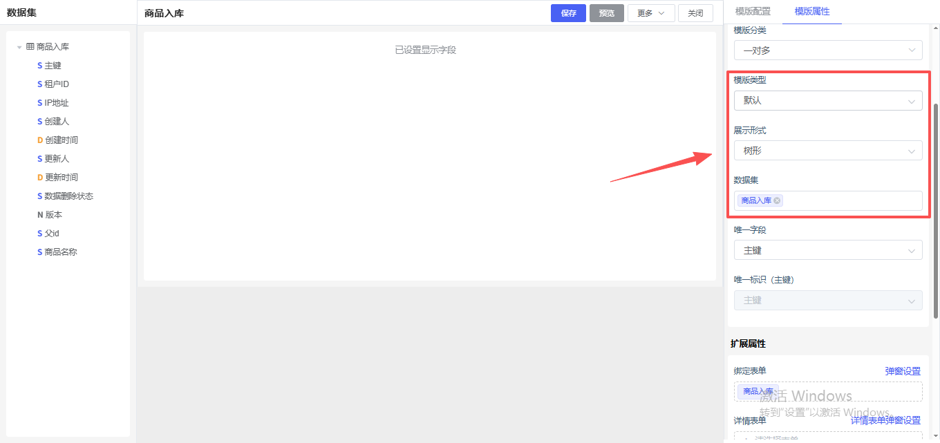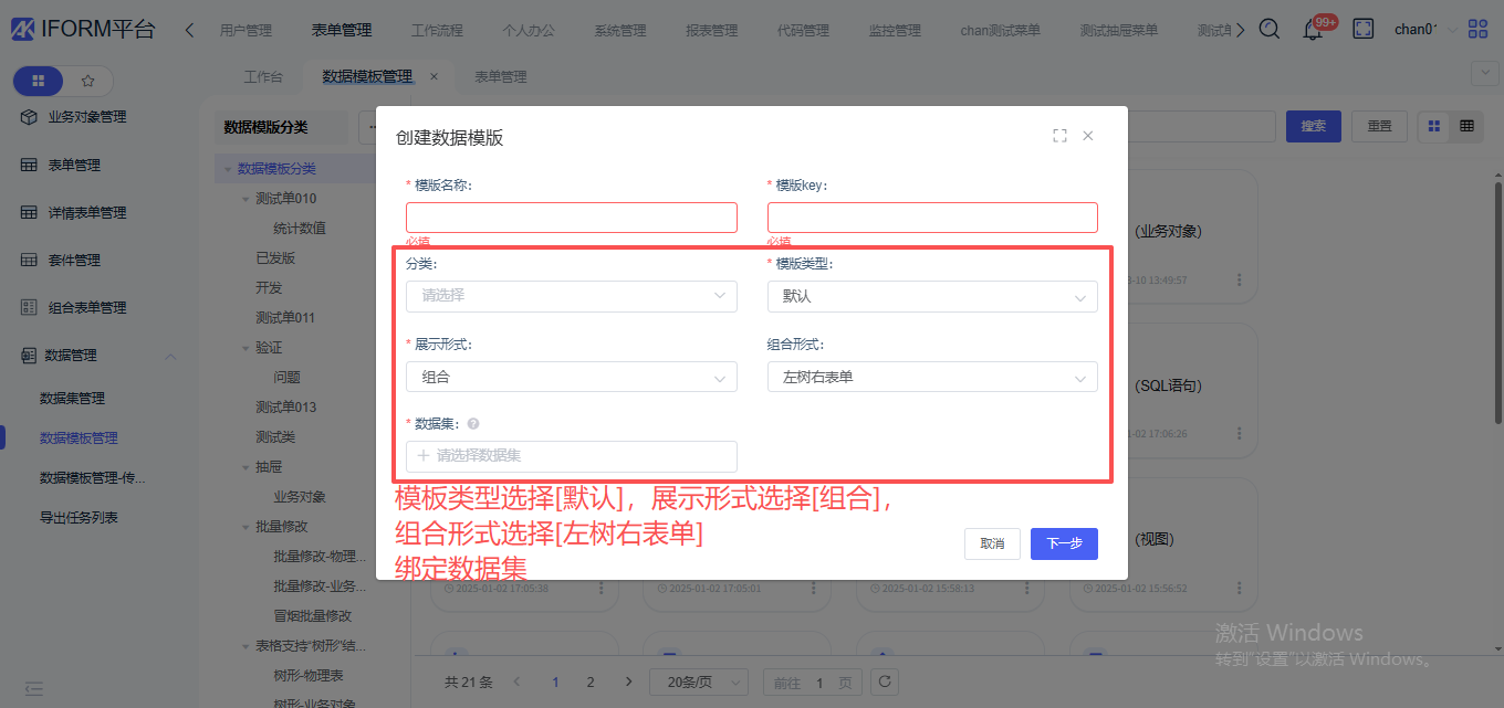 ①创建树形数据模板[可参考操作文档数据模板:树形]
