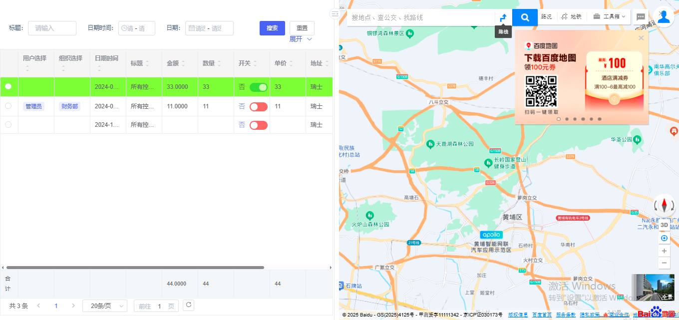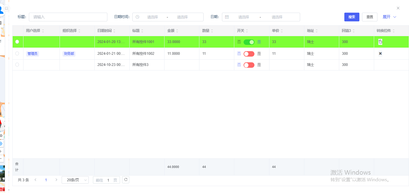 ②当开启配置时,选中节点后,列表会查询出选中节点及其所有下级节点下的所有数据;