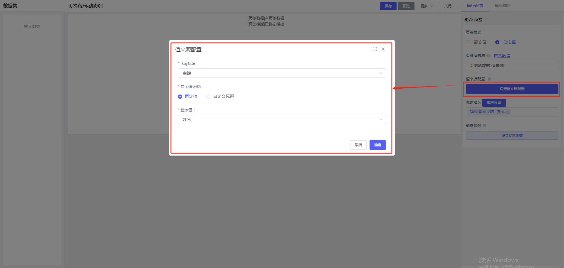 ①页签值来源:值来源,根据值来源下拉选择进行配置标题显示字段,可以多个组合字段显示!