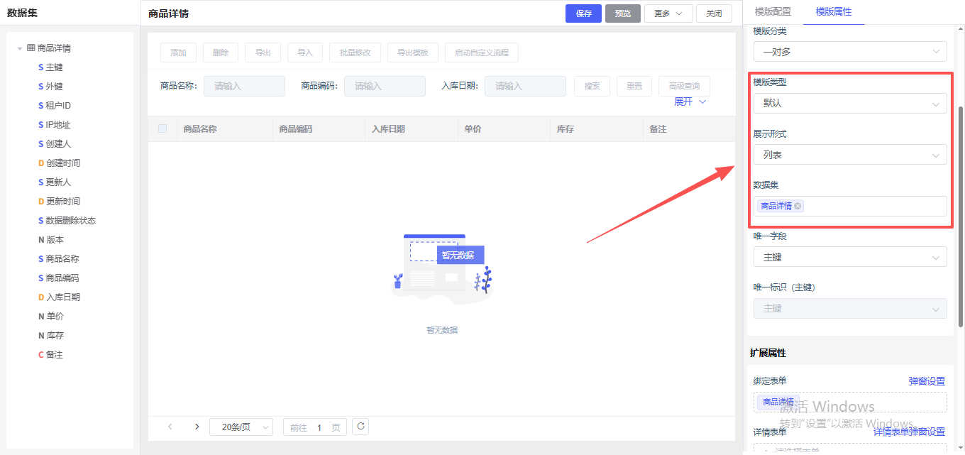②创建列表数据模板[可参考操作文档模板类型:默认]