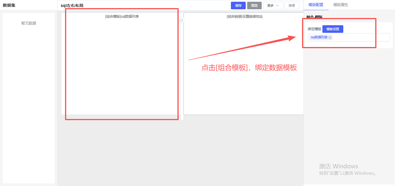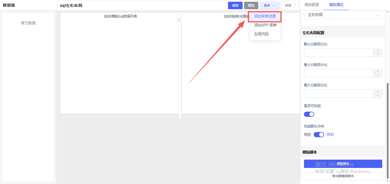 (3)第三步,进入配置页面,绑定树形数据模板和列表数据模板