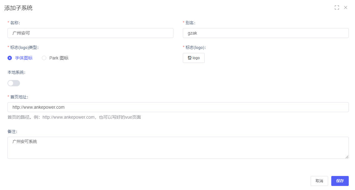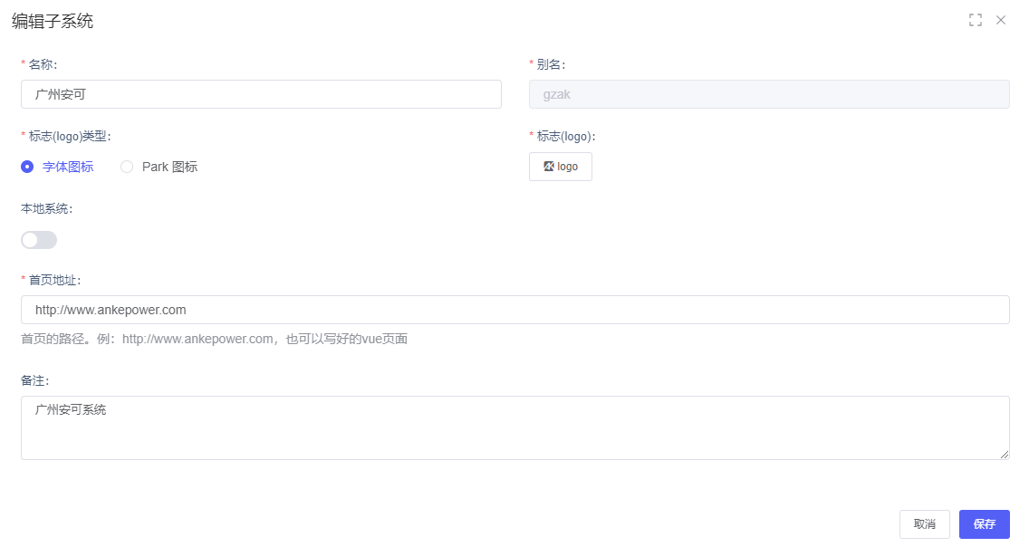 用于配置、管理子系统资源信息。平台可支持多系统录入,比如除本身平台基础功能,可维护OA,ERP等多系统维护,则可在此处添加子系统。