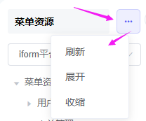 刷新:刷新菜单数据展开:展开菜单树形数据收缩:收缩菜单树形数据