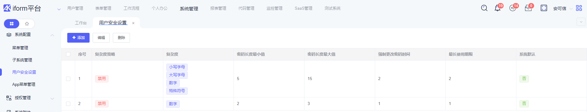 添加:添加用户安全设置