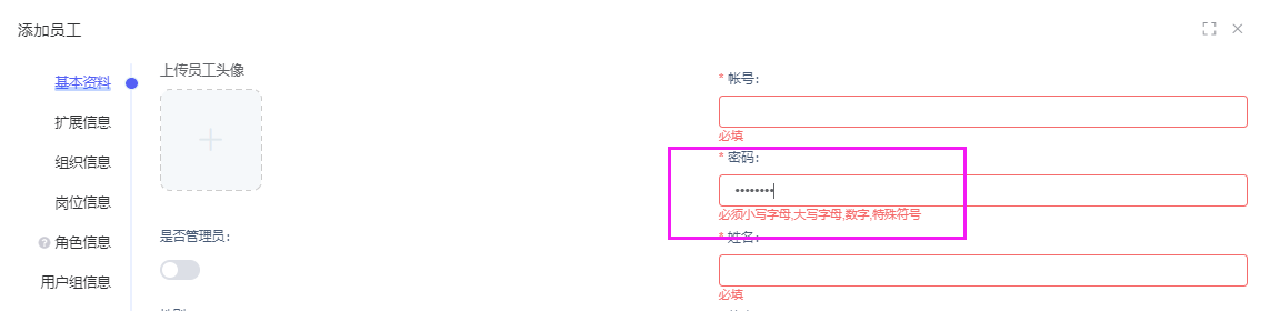 创建新的员工也需要根据配置来创建密码